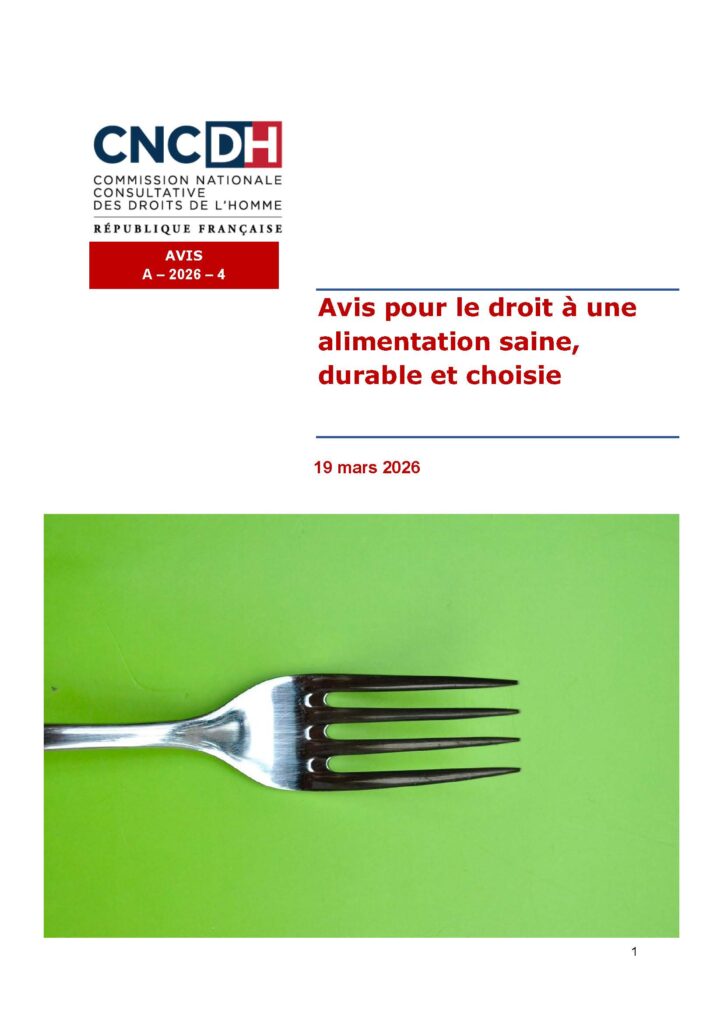 Ce 19 mars, la CNCDH (Commission nationale consultative des droits de l’homme) a publié un Avis pour le droit à une alimentation saine, durable et choisie. Elle y formule 17 recommandations permettant de poser les fondements du droit à l’alimentation en articulation avec les droits humains.