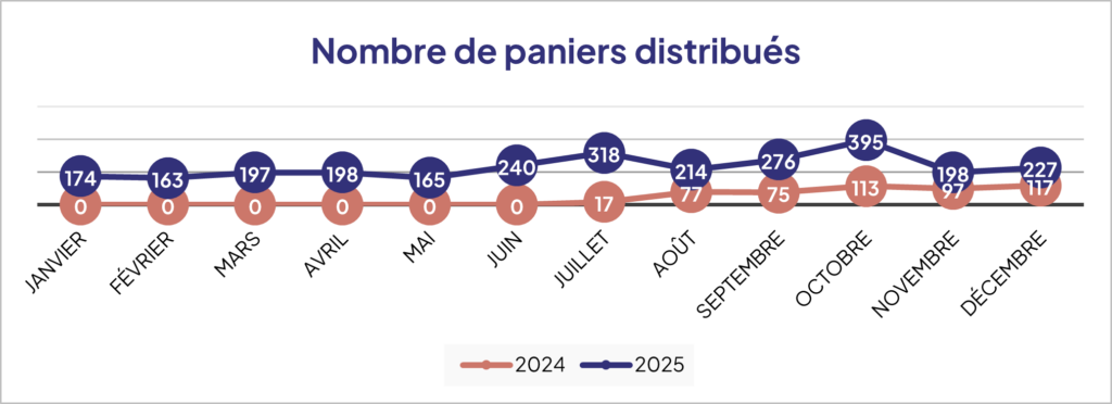 Depuis son lancement à l’été 2024, le Tiers-Lieu alimentaire itinérant connaît une croissance très rapide. L’année 2025 a été marquée par une augmentation de 457 % des distributions, témoignant de l’ampleur des besoins.